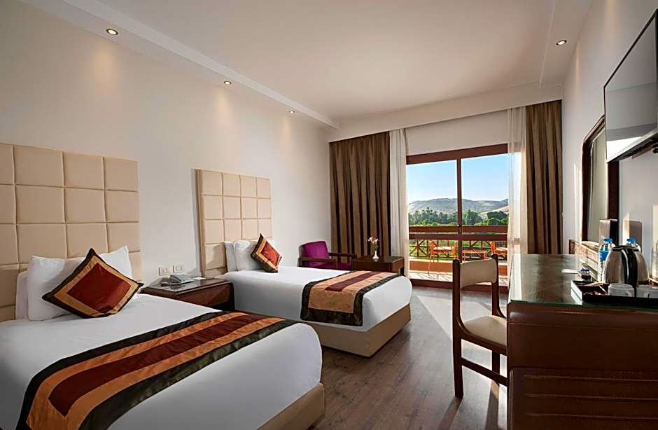 Don’t forget to take advantage of the stunning views from your room’s balcony, whether it's overlooking the lush gardens or the mesmerizing Nile River. Imagine lounging poolside, taking in the serene surroundings, or visiting the nearby historic sites with the help of the on-site tour desk. With free parking, WiFi, and a 24-hour front desk at your service, all your wishes are just a request away at the Pyramisa Island Hotel. Come and create unforgettable memories in the heart of Egypt!